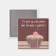 Cute magnet for those who can't resist chocolate!  A sweet chocolate cupcake with frosting and a cherry on top. Says 'I'd give up chocolate but I'm not a quitter!