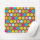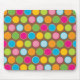 This design features colourful dots with contrasting outlines on a chocolate brown background.