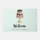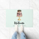 A welcome doormat with a delicious layered party cake. This double decker cake is adorned with pearls and bows and simple florals. Colours include rose gold, magenta, and gold. Delectable chocolate dripping down the sides. Designed with a shiny gradient for extra glitz and glam.