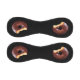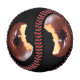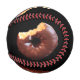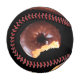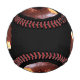 Photo of a chocolate frosted yellow cake doughnut with a very large bite taken out of it. Yum! On a black background. This baseball has 4 doughnut pictures total on it.