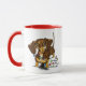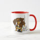 Cute artwork of chocolate & tan Dachshund wrapped in Christmas lights. Art by Andie (c)2014.