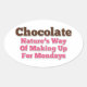 Chocolate, nature's way of making up for Mondays. A cute, funny, humourous chocolate candy saying quote design in pink and brown text font.