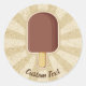 Chocolate ice cream stick icon on beige grunge background with custom text.