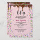 Dripping chocolate icing with colourful candy sprinkles for a 50th birthday party invite.