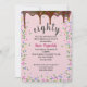 Dripping chocolate icing with colourful candy sprinkles for a 80th birthday party invite.
