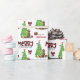 The repeated pattern on this cute Christmas wrapping paper is an image of an Chocolate Labrador Retriever puppy wearing a red and white Santa hat. The dog sits among brightly wrapped gift packages beside a decorated Christmas tree. A bullfinch bird is landing on the tree behind it. Stylised red and black buffalo plaid text says MERRY CHRISTMAS", and your own signature is in two fields for you to customise.