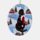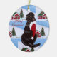 Unique and funny Labrador Retriever Art painted by Naomi Ochiai from Japan. An adorable Chocolate Labrador is playing with Santa Hat!! Delightful design for Christmas for Chocolate Labrador Fans! You can customise text on the both side. Insert your family name to personalise the ornament. :)