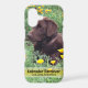 This case is adorned with a close up photograph of a chocolate Labrador Retriever lying in a California Poppy patch. Fill in the template fields with your words or quote, remove the text and text bar or click Customise it! to select a font style, size and colour you like. In customise click on the grey chevrons in Style Options to select this cover for a different device case.