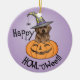 Chocolate Lab Witch Ceramic Ornament