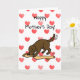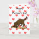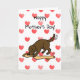 Chocolate Labrador and Stocking Mother's Day Card. Whimsical and funny Labrador Retriever Cartoon created by Naomi Ochiai. A cute Chocolate Labrador loves Mum's stocking.