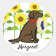 Chocolate Labrador and Sunflowers Summer Classic Round Sticker