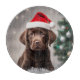 Cute Chocolate Labrador puppy wearing a Santa hat.