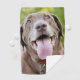 Happy chocolate Labrador Retriever dog panting at the park