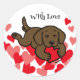 Chocolate Labrador Puppy Chewing Heart Valentine Classic Round Sticker