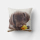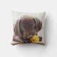 Chocolate Labrador Puppy With Toy Duck Cushion