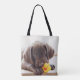 Chocolate Labrador Puppy With Toy Duck Tote Bag