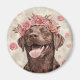 Chocolate Labrador Retriever Dog Pink Floral Magnet