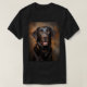 A close-up portrait of a Chocolate Labrador Retriever, painted in a realistic style. The dog has a friendly expression, with its tongue slightly sticking out and its brown eyes looking directly at the viewer. The fur is rendered with meticulous detail, showcasing the texture and depth of the animal's coat. The background is a soft, blurred brown, creating a sense of depth and focus on the dog's face. Perfect gift for labrador lovers.