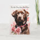 This cute card for the Labrador Retriever Dog Mum or Dad makes a great Valentine's Day card, but can also be used for a birthday or any other special occasion. All the text is easily changed to anything that you'd like. The front has an image of a chocolate brown Labrador Retriever dog wearing a pink collar, and with pink roses around him. The inside currently says "You make my tail WAG".
