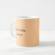 A chocolate mug with the words, Chocolate lover on it. The words are on a mocha background which is trimmed in a dark brown border.