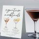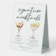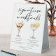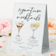 This dessert signature mocktails menu table tent sign features 2 sweet non-alcoholic drinks and their ingredients for your party or wedding bar. A Chocolate Martini and Lemon Drop drawing above your custom event text.