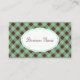 A mint green and chocolate brown gingham pattern decorates this professional business card. Customise this business card to suit your needs. Use this business card for a small business, bakery, candy store, sweet shop, chocolates, gourmet foods. ice cream shop, caterer, inn, bed and breakfast, daycare, stylist, hair salon, cosmetologist, florist, appointments, etc....The design is from original art.