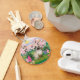 Trees with beautiful spring blossoms in shades of pink form the background focus for a Himalayan cat. A dove flies overhead on this lovely spring day.