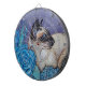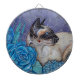 Original watercolor painting by Sandra Gale, featuring a chocolate point Siamese cat, surrounded by blue flowers on a pale purple background. Flowers are blue hydrangea, and blue poppies and a blue rose. Great design for cat lovers and those who especially like the Siamese breed. Perfect for bedroom wall art or framed with matching image. Matching watercolor painting of a blue point Siamese also available in my EverIrisPrints store.