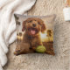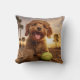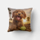 On one side of the pillow, witness the heartwarming sight of a cute chocolate poodle puppy dashing along the beach, its soft fur illuminated by the golden rays of the setting sun. With a tennis ball in its mouth and a twinkle in its eyes, this playful pup captures the essence of happiness in every stride.