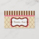 This cute business card has vintage style. Customise this argyle  business card to suit your needs. Add or delete information, change the font style, font size, etc...The design is from original art. Use this stylish business card for a spa, salon, small business, home decor, coffee shop, gourmet chocolates,  ice cream shop, nail salon, inn, cosmetologist, preschool, hair stylist,  event planner, child care,  daycare, bed and breakfast, boutique, bakery, etc...