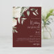 Chocolate Red White Hydrangea Wedding Invitation. Modern Design and font. Elegant.
