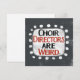 "Choir Directors Are Weird" is a cute text design in grey with black and red text, along with a white accent shape and white textured whimsical dots surrounding it.