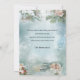 Charming collage of beautiful Victorian angels, snow-covered pine, roses, holly, Christmas music, typography, evergreens and rustic rural landscapes bordered with delicate white filigree on light sky blue background.