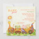 Cute baby giraffe, elephant, bunny, and sheep on Choo Choo train illustrated on custom Baby Shower Invitations. Personalise the super adorable and whimsical invite with your own wording for a BABY ANIMAL THEMED BABY SHOWER or SPRING BABY SHOWER! Feel free to change the typefaces, colours & sizes of the text as well. ((Contact ujean4791@gmail.com for custom work and/or matching items.))