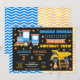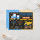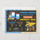 Bright stars, bold blue and gold accents, and a cheerful zigzag border make this invite ideal for a shared birthday celebration for siblings, twins, or best friends. The combination of a cute train and construction truck creates a unique two-theme party invitation that works perfectly for boys or any child who loves transportation and construction.
