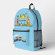 Choo Choo Train Loco Motive Blue Funny Monkeys 4 Printed Backpack