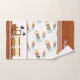 Do you have a little choo choo train fan? This custom bathroom bath towel set is perfect! Towel set has a pattern of a bright, colourful steam engine with passenger cars on a railroad track. There are also buildings, trees, and a place to add the first name of your young boy or girl. (Name may be removed per your preference.)