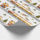 Do you have a little choo choo train fan? This custom wrapping paper is perfect! Gift wrap has a pattern of a bright, colourful steam engine with passenger cars on a railroad track. There are also buildings and trees.