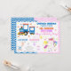 Bright stars, soft pastel accents, and a cheerful blue and pink zigzag border make this design ideal for siblings, twins, or best friends who want a unique party that reflects both of their favourite things. Perfect for a boy & girl joint birthday, transportation and unicorn party, magical kids birthday, or two-theme celebration.