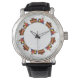 Black leather band wristwatch with a whimsical choo choo train face. Adult and children watch styles available.