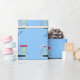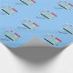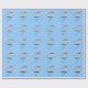 A cute design featuring little choo choo trains in bright colours with a smoke billowing out the top. A soft blue background.