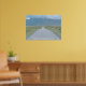 Inspirational wall art featuring the text "Choose a direction all your own" set against a single lane highway leading to cloud covered mountains.