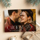 Elegant holiday photo card featuring your favourite full-bleed horizontal photo with “Choose Joy” in a mix of modern sans-serif and calligraphy script overlay. Personalise with your family name and year. The back displays a black and white watercolor plaid pattern for a chic finishing touch. Part of our Choose Joy Christmas card collection.