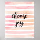 Choose joy Pink watercolor stripes inspirational Poster