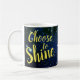 A far out mug with a star studded background and the words "Choose to Shine" in yellow script.