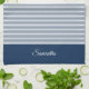 Modern minimal design featuring skinny stripes and a colour block with your name or text. Leave it in classic navy blue and white or easily choose your own colours to match your style.