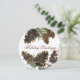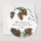 A beautiful Christmas holiday card to send to all your friends and family members, features a round card with a white background that you can change to the colour of your choic, pine cones, tree branches, and customisable text that reads Holiday Greetings on the front, the same customisable white background, pine cones, and branches with a customisable area to add your family name, first names, and current year on back.