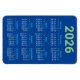 This design features the 2026 calendar (by default, dark and light blues, white, with green accent colour). All colours on this magnet are customisable (background, year, months, days of the week, and dates).