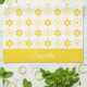 Fun kitchen tea towel featuring your name and a fun retro flower pattern. Leave it in yellow and white or easily choose your own colours to match your style!