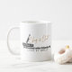 I thought this was a very cute product. My husband gave me the nickname of cutie early on in our relationship. Every morning I see this mug and smile. It took some doing but the original color of gold lettering was changed. I chose pink. The change had no effect on the overall product. It works well, mug wise. The image stays in the dishwasher. Colors took some time to adjust but I was able to fix to my preferred color. The print is fun and casual.